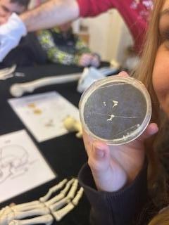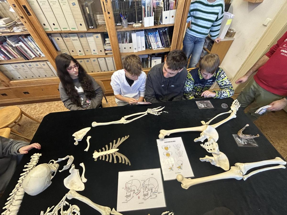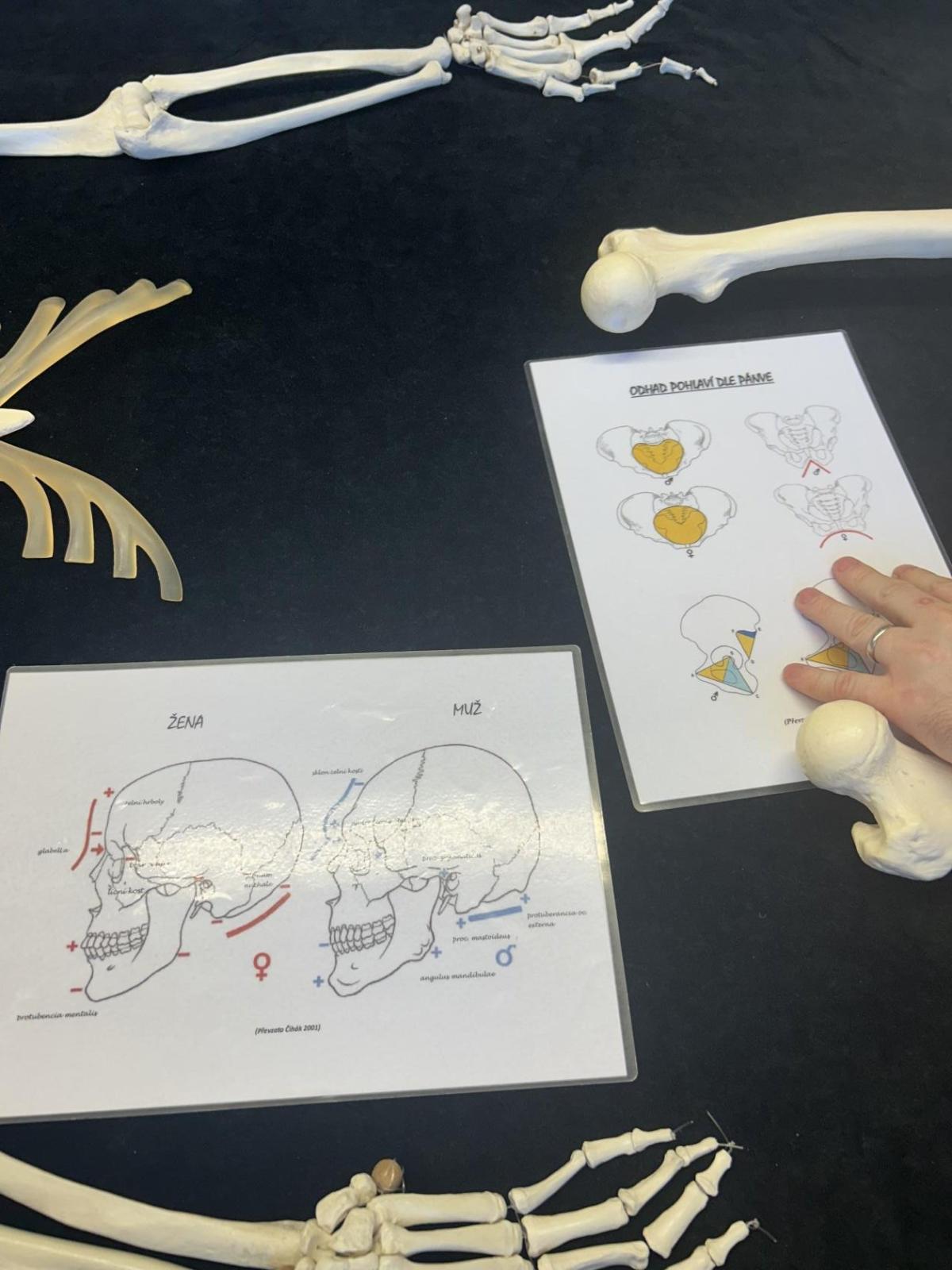 Druhou část exkurze tvořil interaktivní program Sběratelé kostí, ve kterém se žáci ocitli v roli forenzních antropologů. Z nalezených kostí sestavovali lidskou kostru a podle znaků na lebce a pánvi určovali pohlaví jedince. Prakticky si tak zopakovali znalosti kosterní soustavy a anatomických rozdílů mezi mužem a ženou.