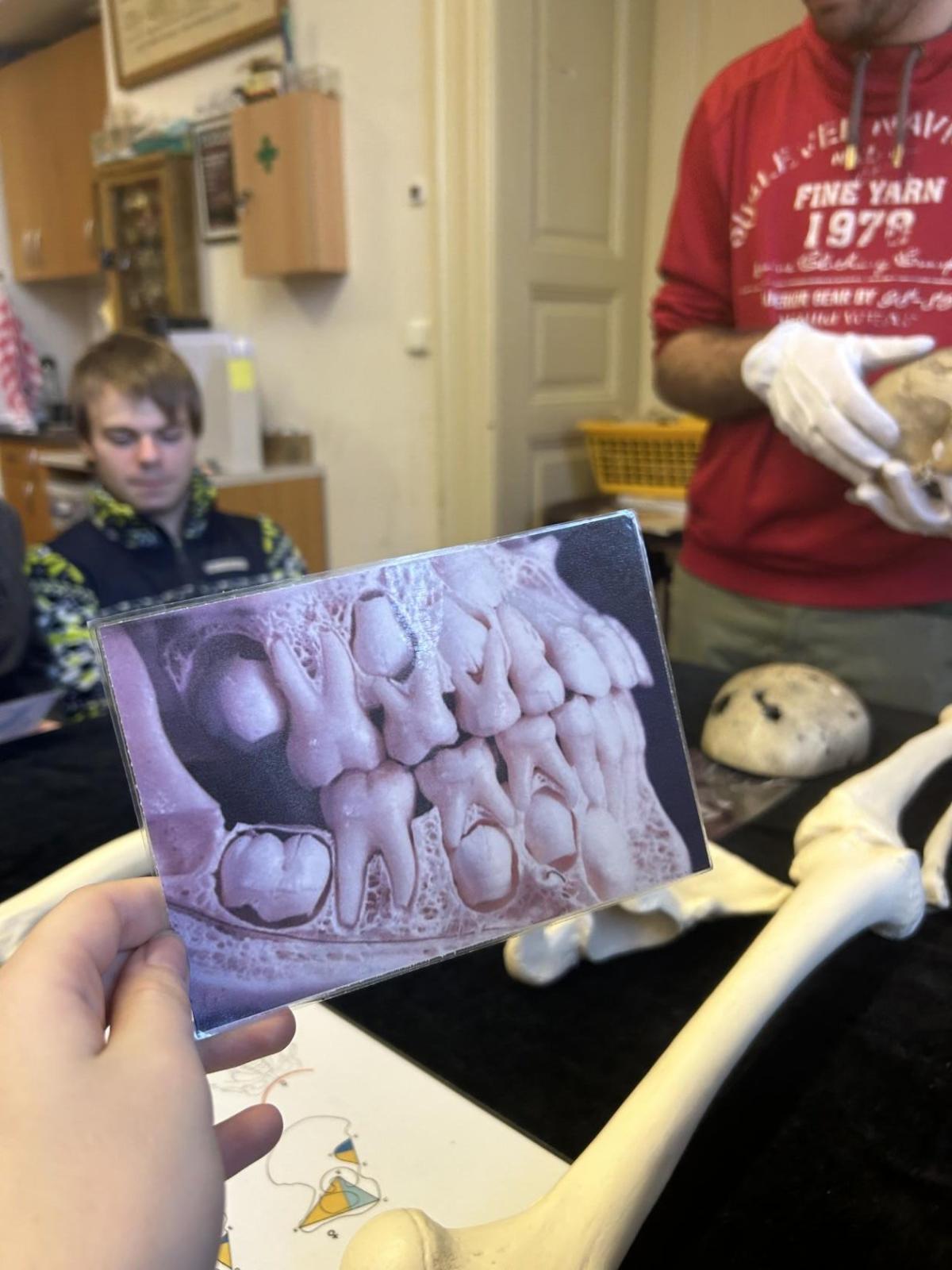 Program byl rozdělen do dvou částí. První skupina se seznámila se stálou expozicí muzea, kde si žáci prohlédli unikátní sbírky lebek, kostry lidí s různými genetickými onemocněními (např. nanismus, gigantismus, chondrodystrofie), mumie i vývoj člověka od embrya po dospělost. Nechyběl ani pohled na fylogenezi člověka a rozdíly mezi jednotlivými vývojovými stupni rodu Homo.