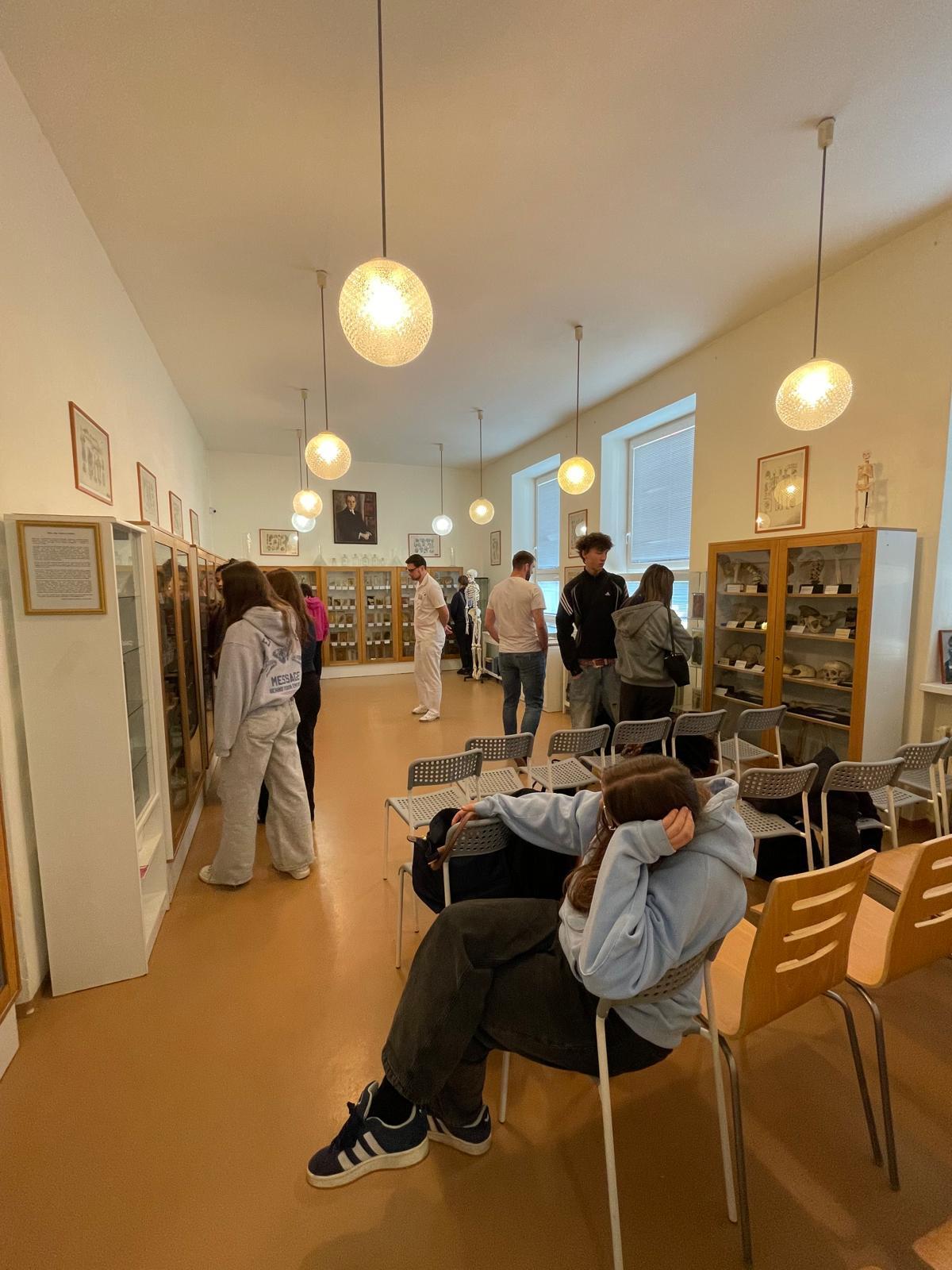 Druhý den stáže pokračoval návštěvou Slezské nemocnice, konkrétně muzea patologie, kde studenti získali hlubší vhled do zdravotnického prostředí. Následovalo setkání na Soukromé obchodní akademii, kde měli možnost nahlédnout do výuky oboru sociální činnost a sdílet zkušenosti se studenty i pedagogy. Toto setkání otevřelo prostor pro budoucí spolupráci mezi školami.