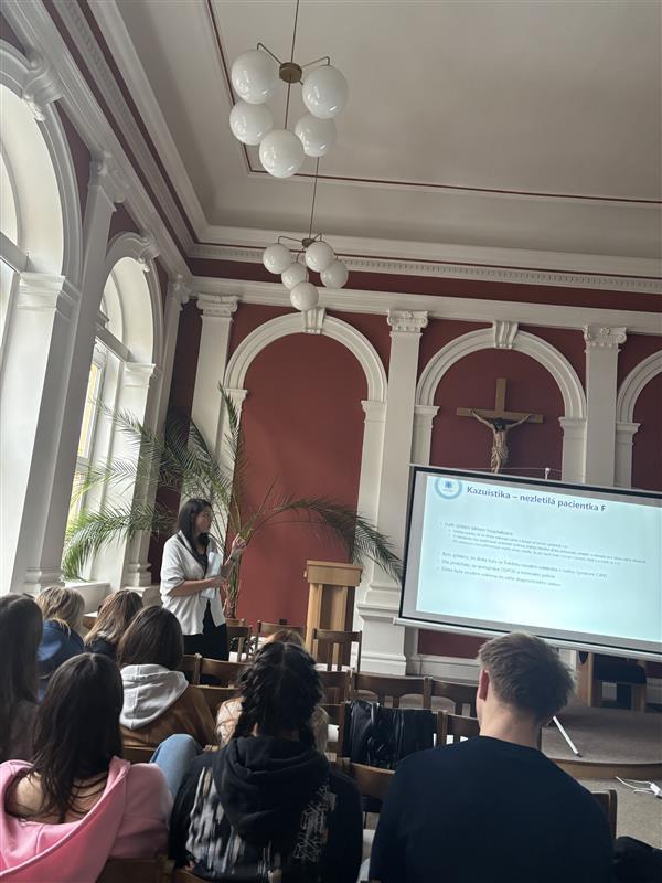 Přednáška přiblížila také spolupráci sociálních pracovníků se zdravotnickým personálem a dalšími institucemi a nabídla studentům cenný vhled do praxe sociální práce ve zdravotnictví.