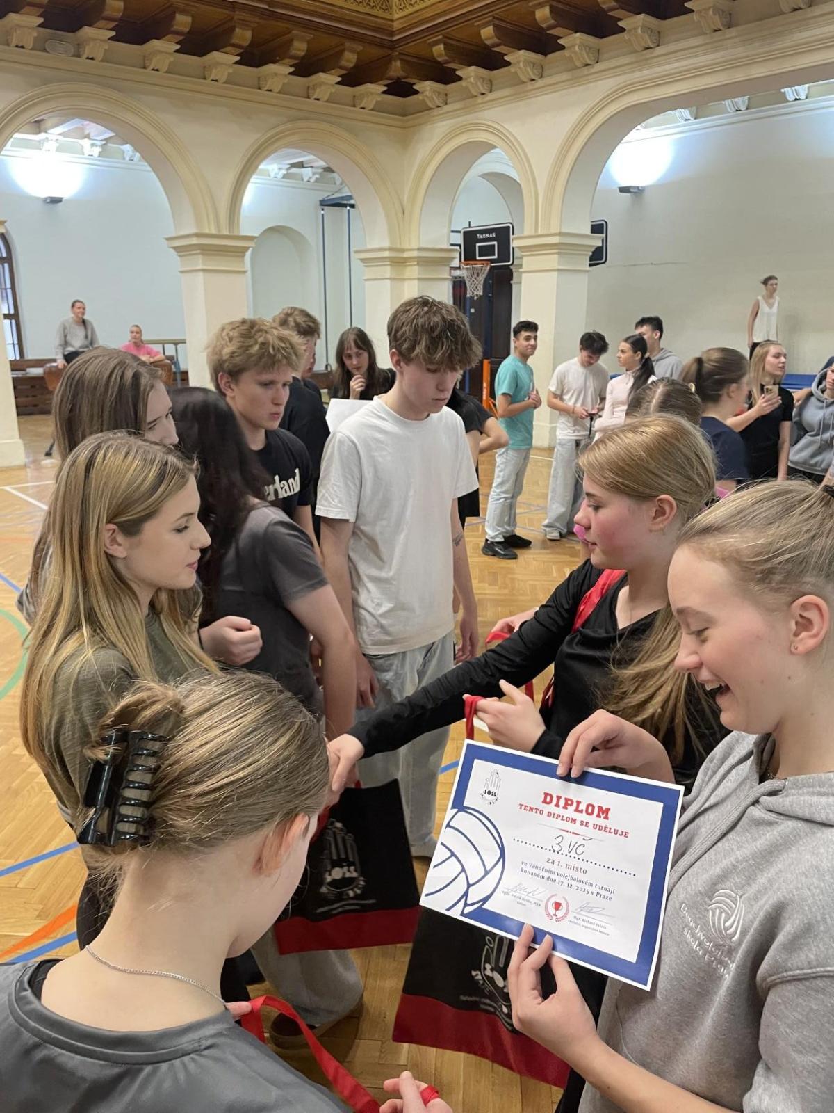 Na naší škole proběhl ve středu 17. prosince školní vánoční turnaj ve volejbale, který nabídl napínavé zápasy, týmového ducha a skvělou sportovní atmosféru.