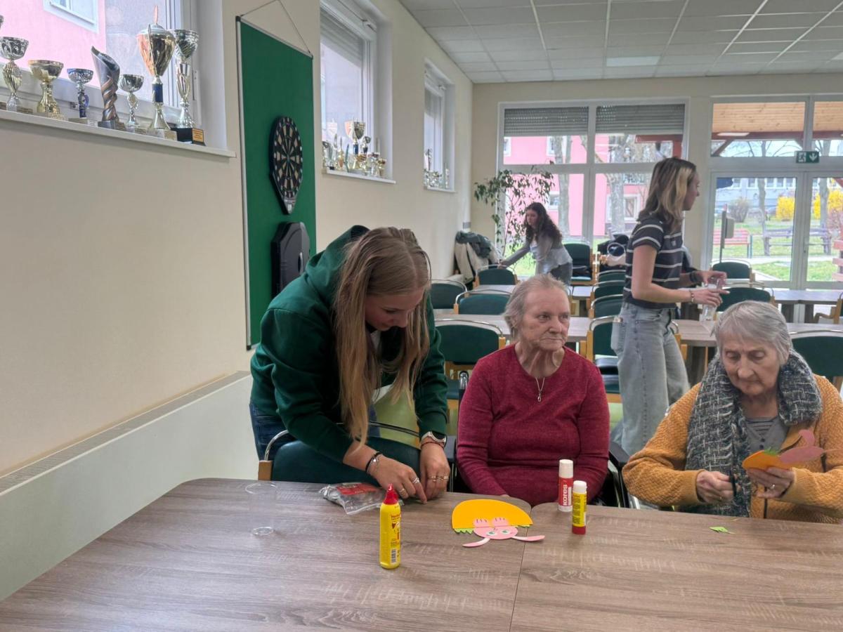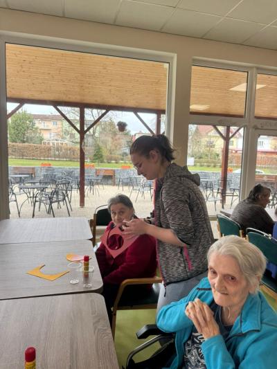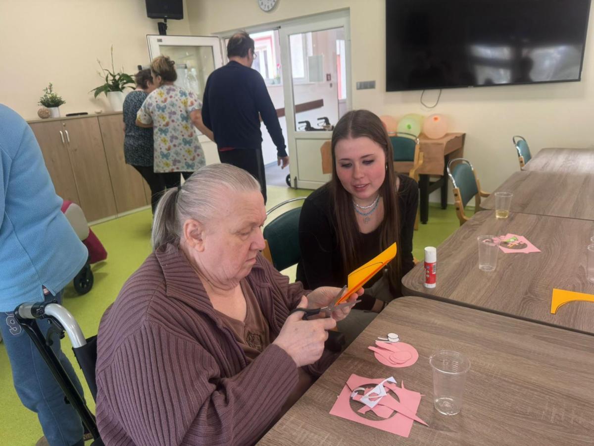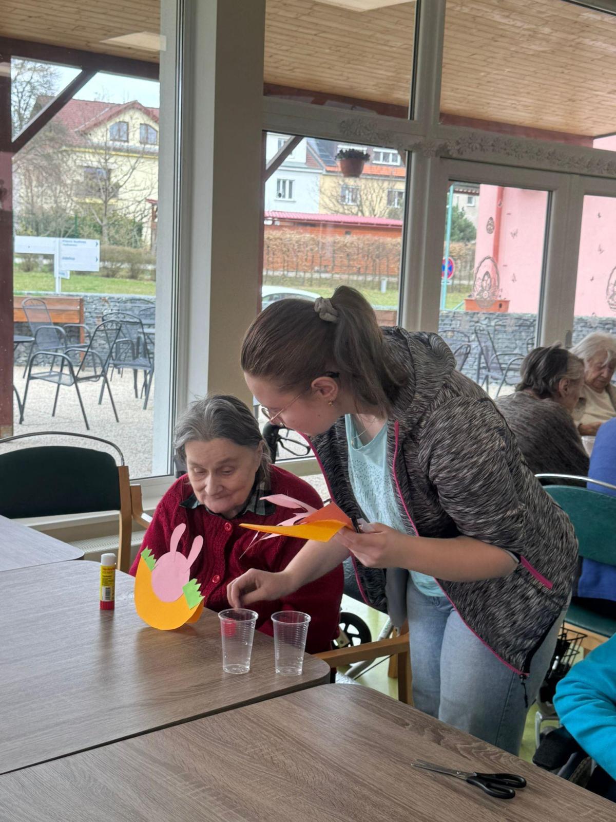 Součástí setkání byla také praktická část, během které žáci v rámci předmětů volnočasové činnosti a pedagogiky společně s klienty vyráběli velikonoční ozdoby. Aktivita podpořila mezigenerační spolupráci, kreativitu i sdílení zkušeností.