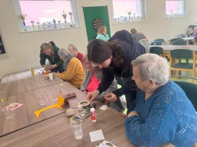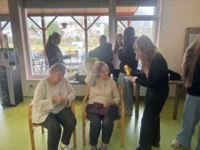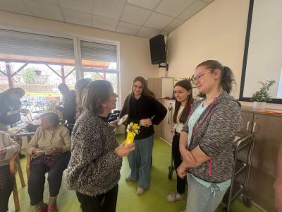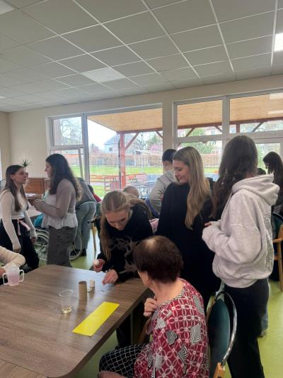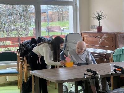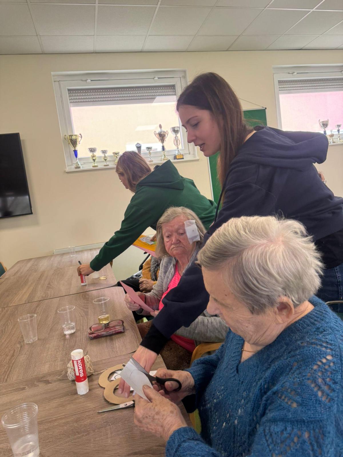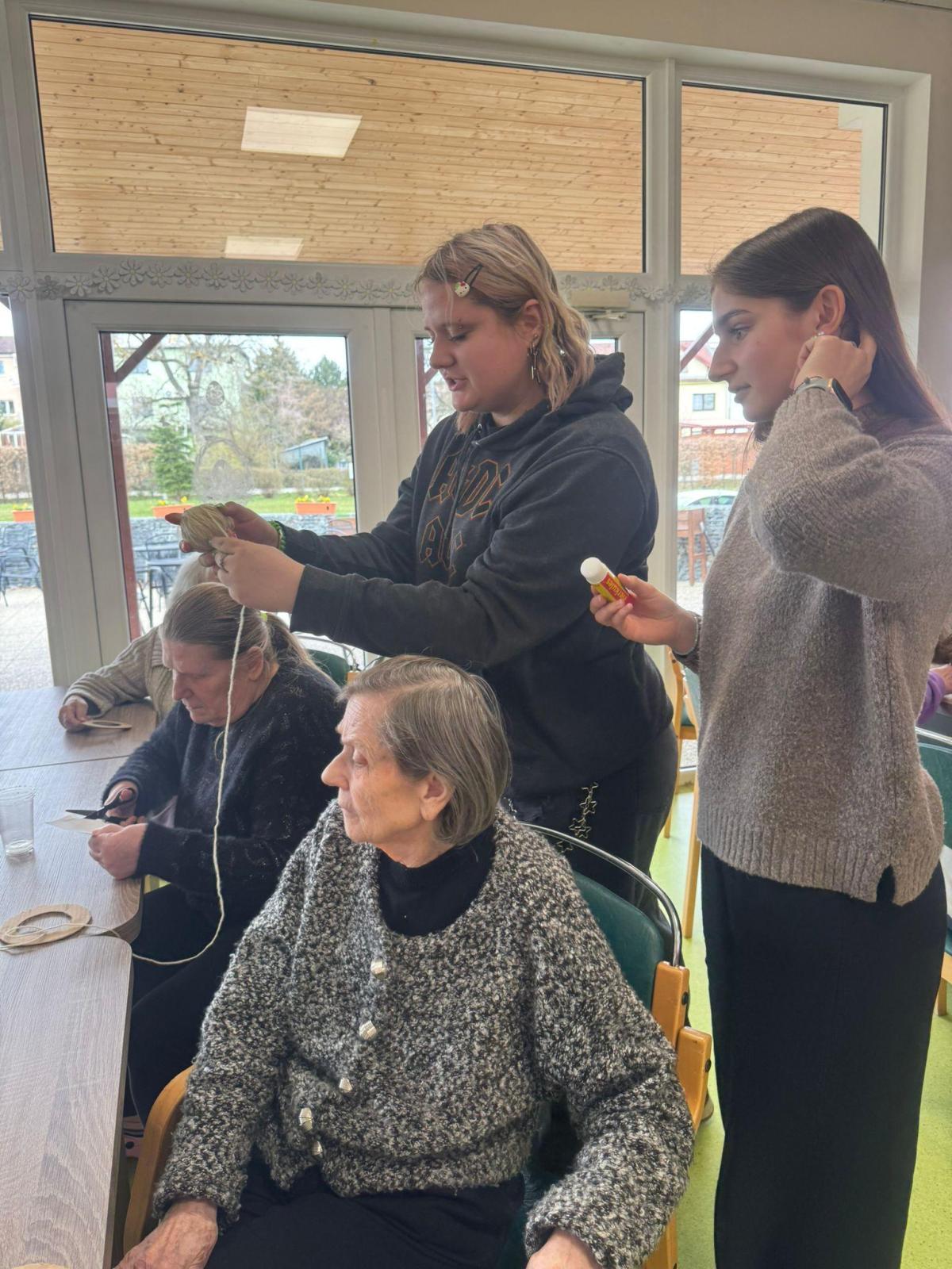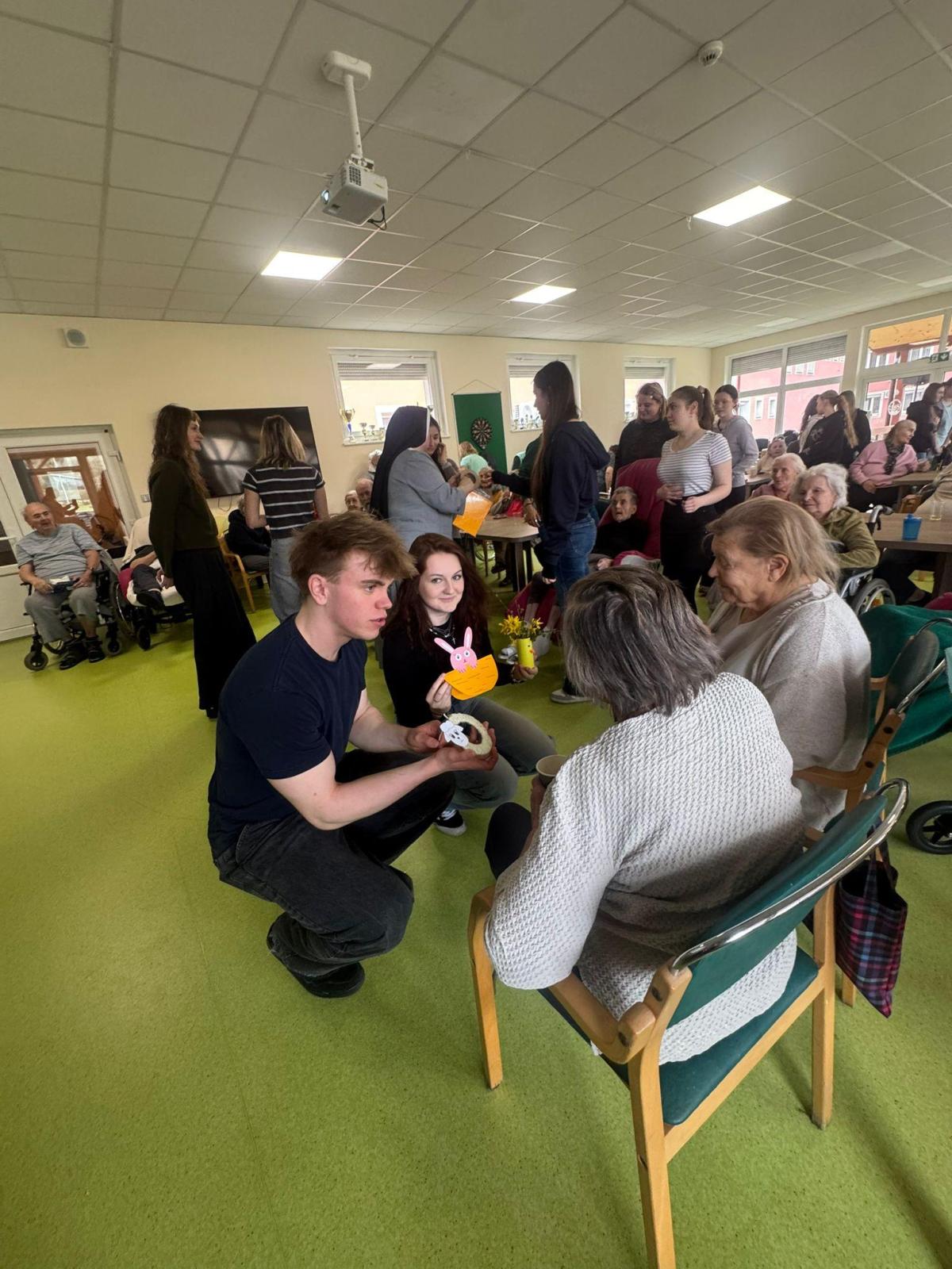 Součástí setkání byla také praktická část, během které žáci v rámci předmětů volnočasové činnosti a pedagogiky společně s klienty vyráběli velikonoční ozdoby. Aktivita podpořila mezigenerační spolupráci, kreativitu i sdílení zkušeností.